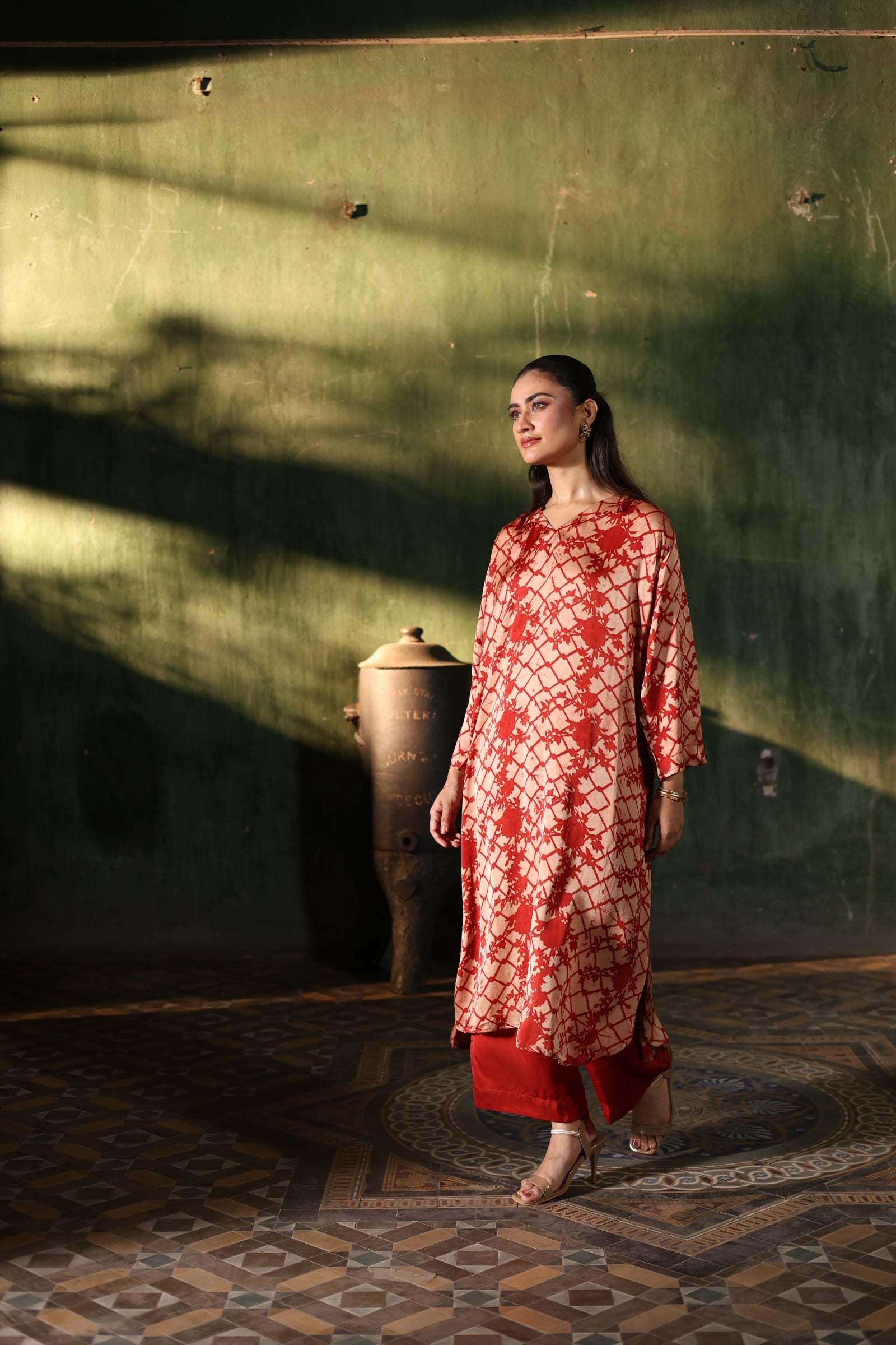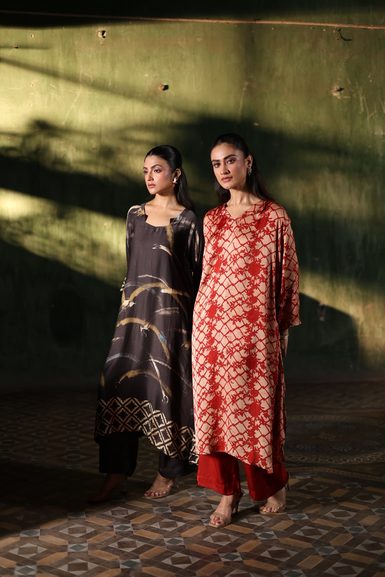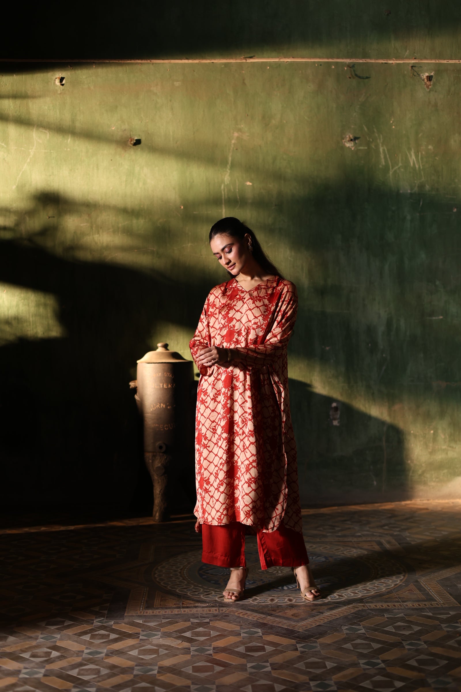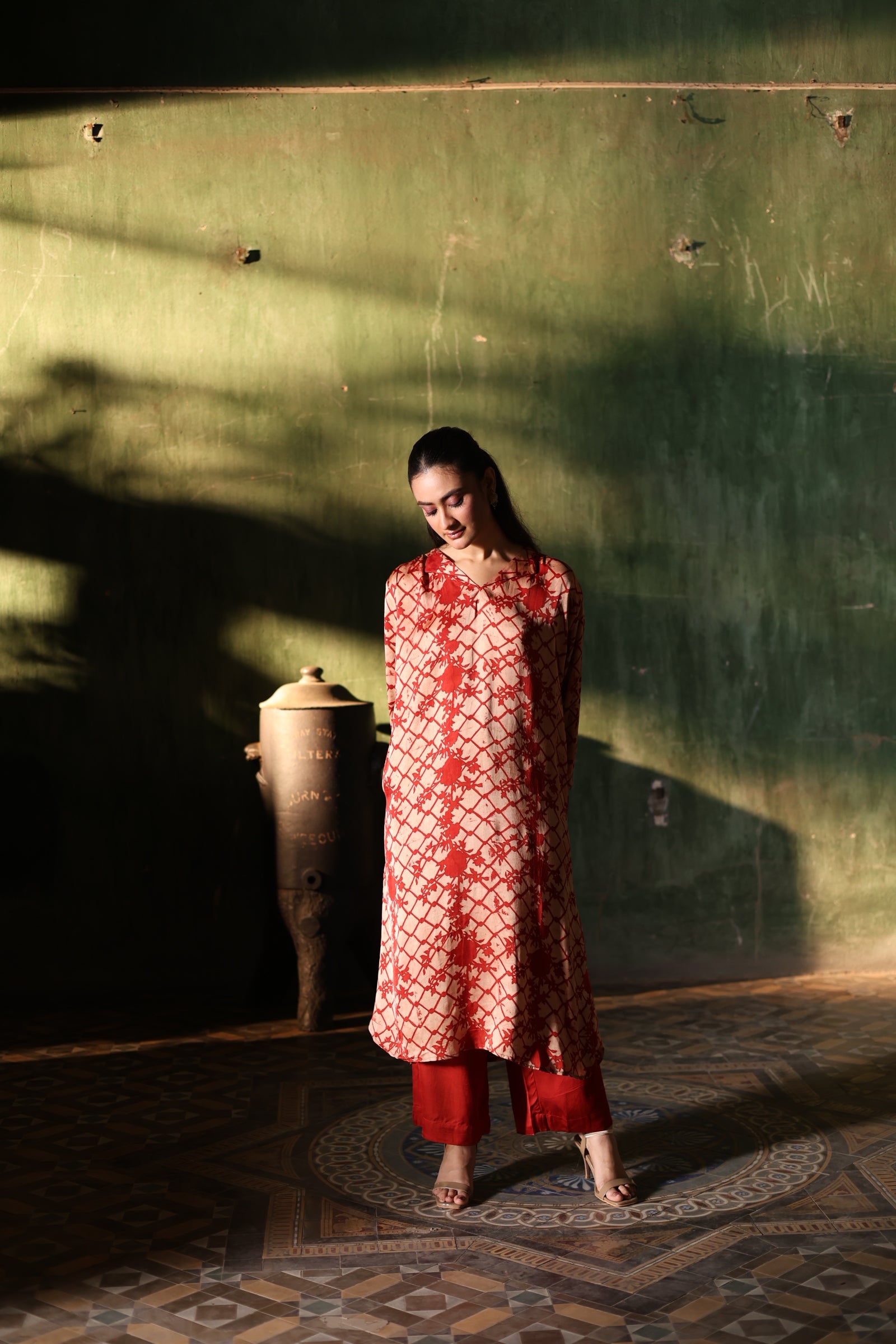• Our process is simple yet meticulous - once the order is placed, our team will connect with you on WhatsApp for -- basic 5 body measurements (chest, shoulder, arm hole, hips & your height) and discuss in detail your preferred fit & style