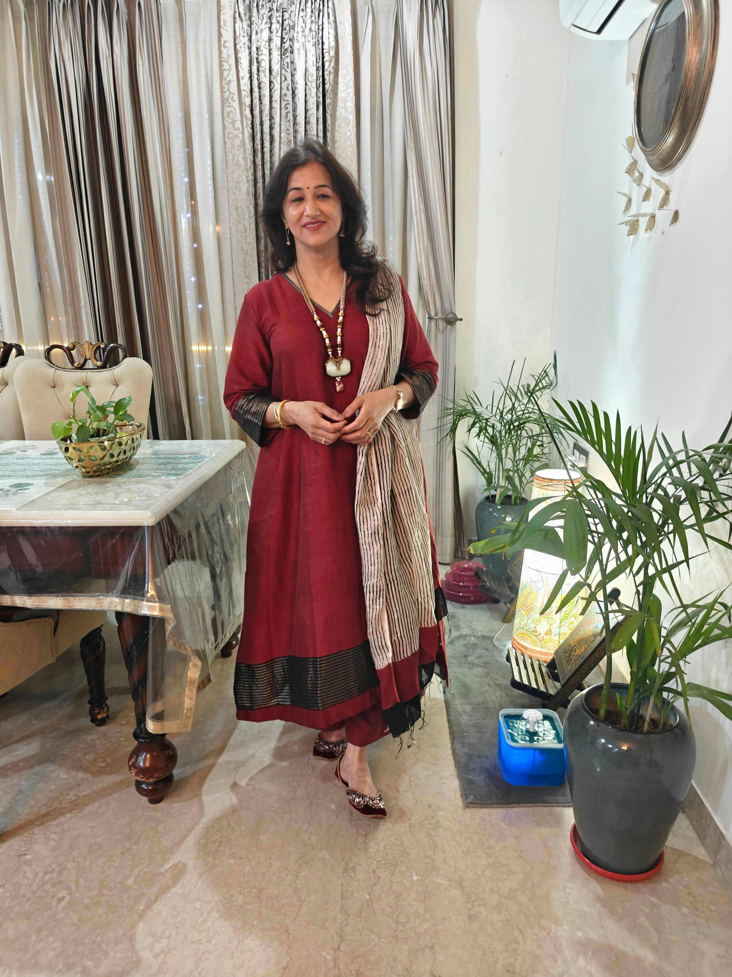 • Fabric - Handspun cotton tunic lower, linen stole dupatta
