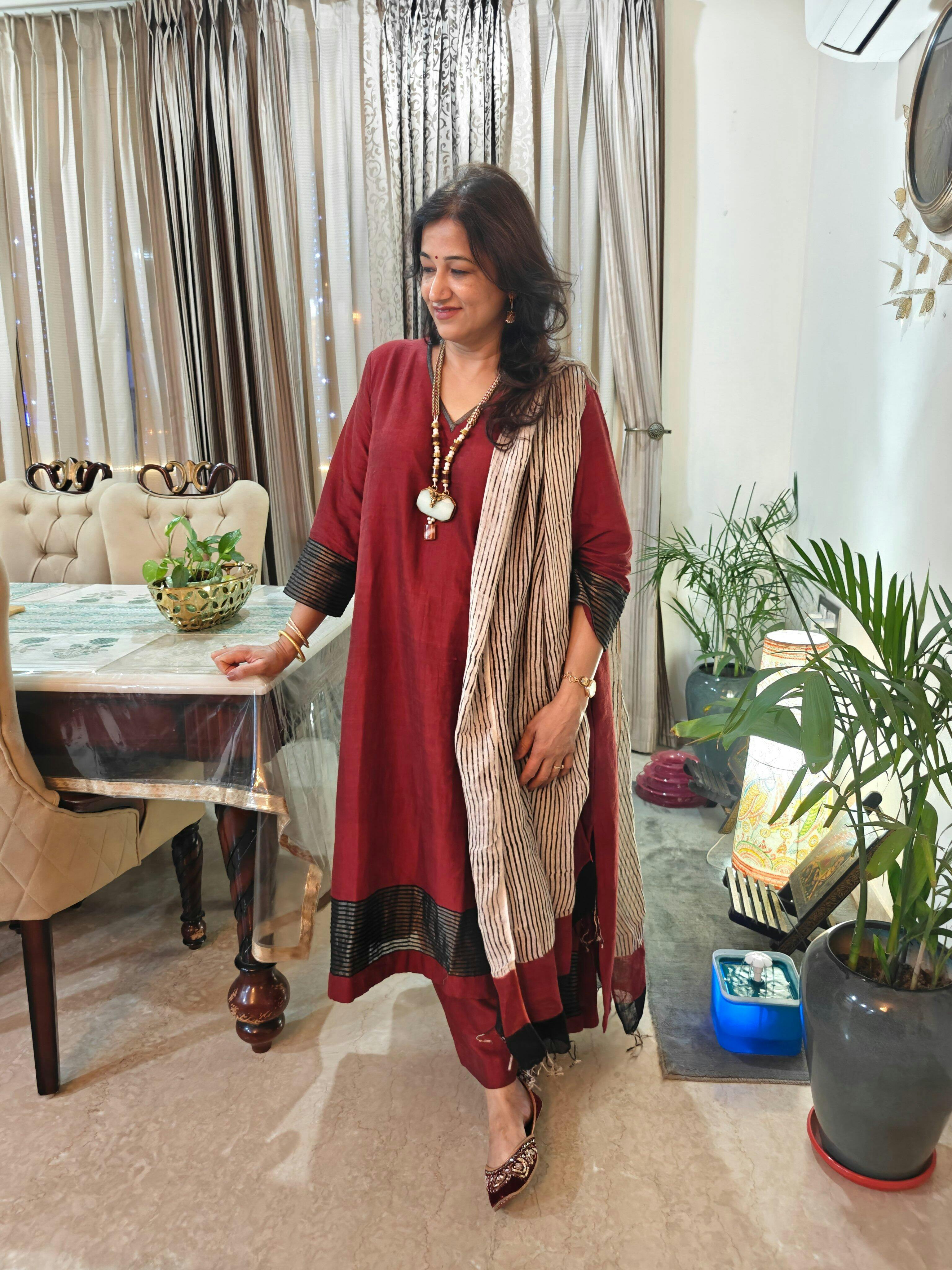 Raag Maroon (Jamdani×Block print) Raag Maroon (Jamdani×Block print) Raag Maroon (Jamdani×Block print) Raag Maroon (Jamdani×Block print)