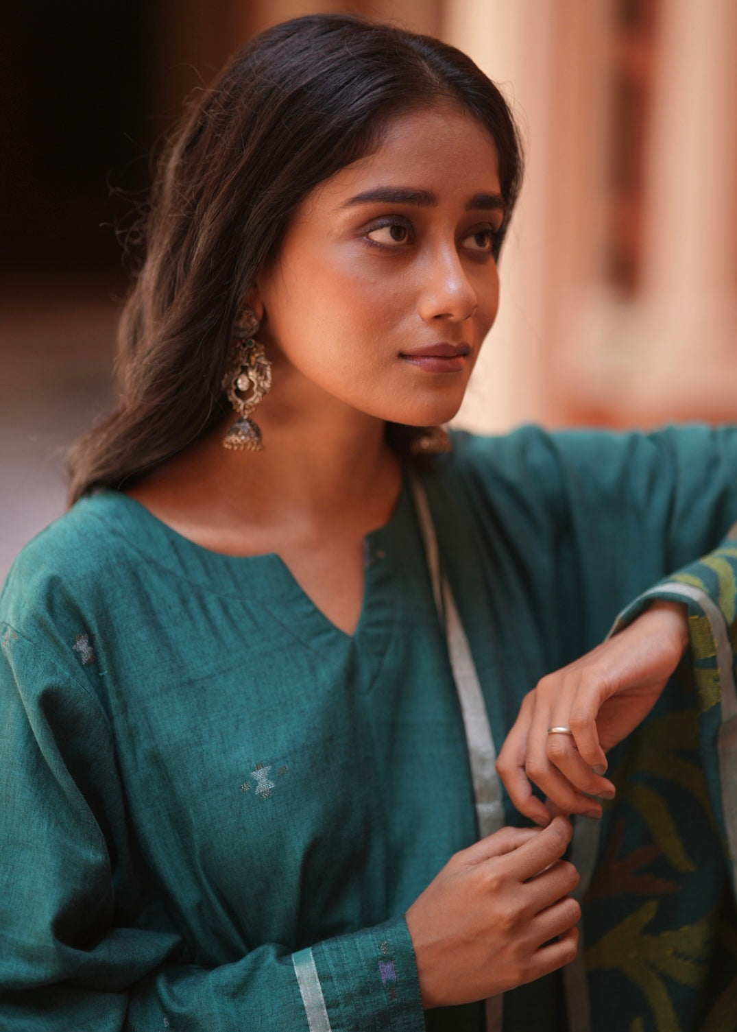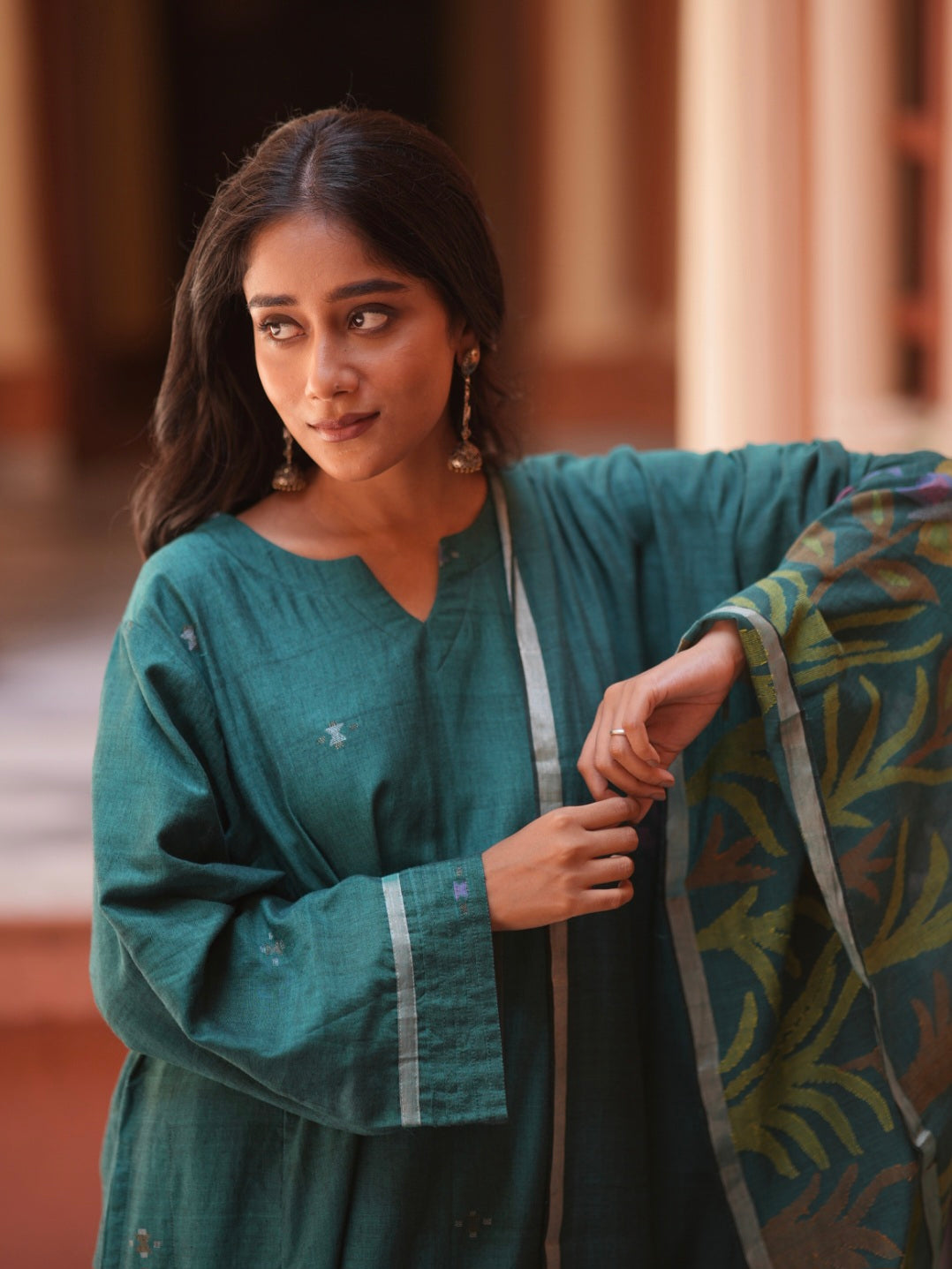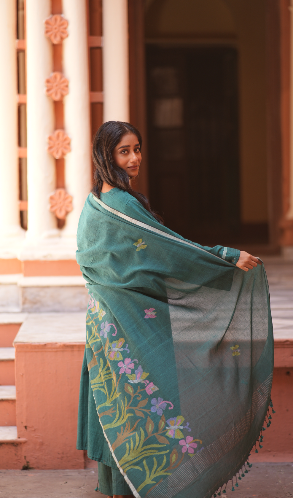 Teal Bloom (Mulmul Jamdani) Teal Bloom (Mulmul Jamdani) Teal Bloom (Mulmul Jamdani) Teal Bloom (Mulmul Jamdani)